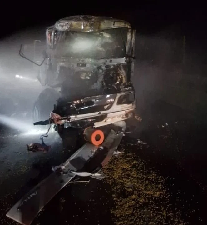 Tras una colisión entre dos camiones, por alcance, el camión de la víctima fue involucrado. Tras el impacto el vehículo se incendió por lo que se solicitó la intervención de Bomberos Voluntarios de esa localidad.