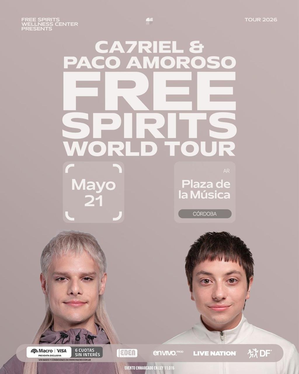 A lo largo de FREE SPIRITS, CA7RIEL & Paco Amoroso expanden su ya impredecible mezcla de trap, rock, pop y espectáculo disruptivo hacia algo más grande, filoso y emocionalmente genuino, sin perder el humor, la volatilidad y la destreza musical que los han convertido en uno de los proyectos más magnéticos surgidos de Argentina en este siglo.