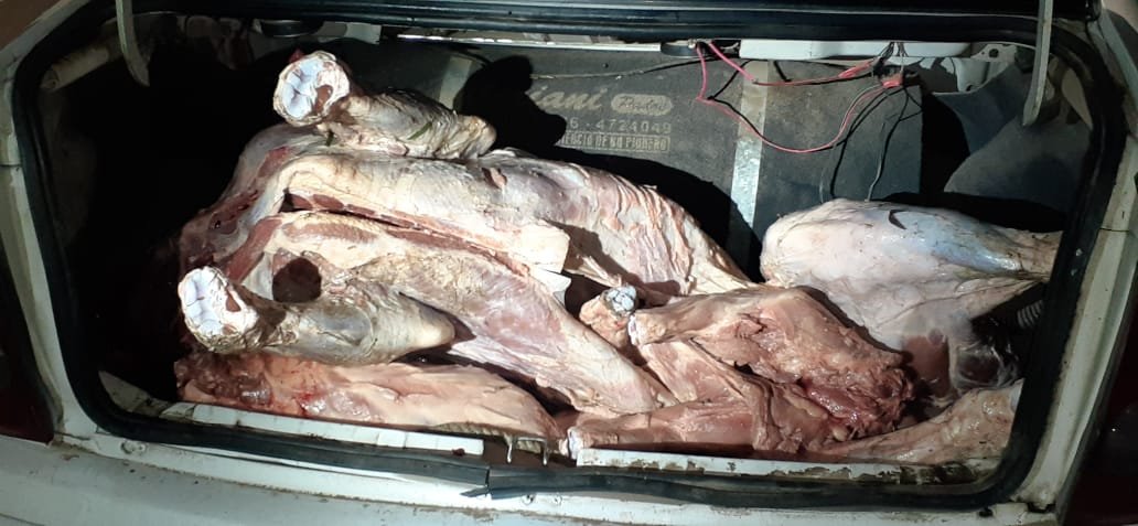 Los infractores se trasladaban en un Chevrolet Corsa. En el interior del vehículo tenían 4 lechones y un ternero.