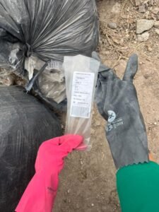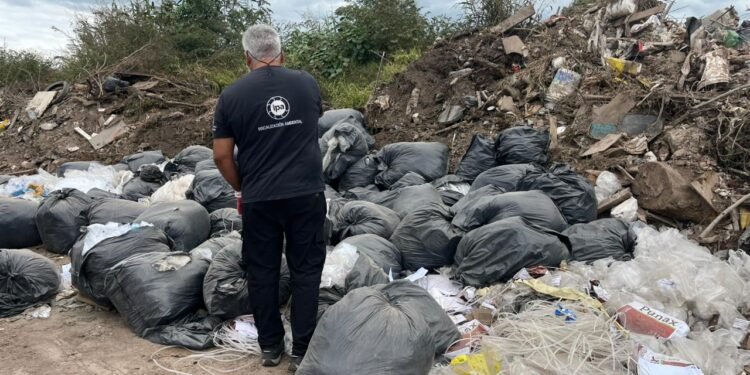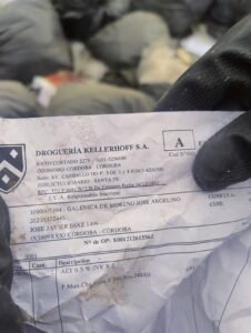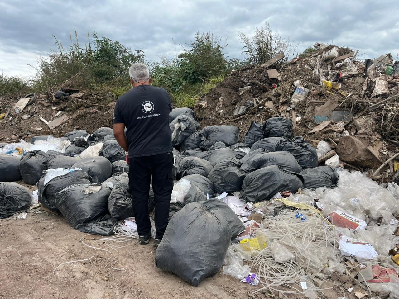Previamente, agentes inspeccionaron este punto crítico de disposición ilegal de desechos. En el lugar se detectó un cúmulo de 58 bolsas de consorcio negras que contenían en su interior documentación vinculada a la empresa.