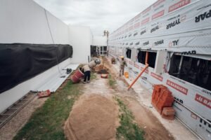 En paralelo, comenzaron las tareas de instalación de agua y electricidad en el edificio del ala central. Este sector, que albergará los espacios de hemoterapia, laboratorio, anatomía patológica y depósito de farmacia, ya cuenta con la estructura completa, el tendido de cloacas y el montaje de los ductos de aire central finalizados.