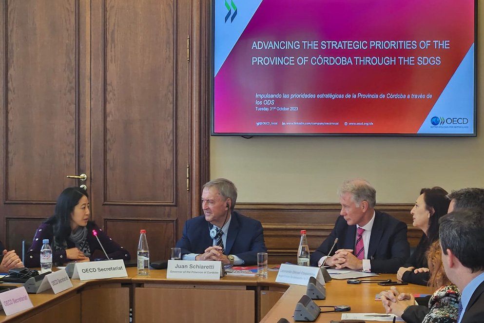 La reunión tuvo como fin dar cuenta del vínculo entre la Organización para la Cooperación y Desarrollo Económicos (OCDE) y la Provincia de Córdoba a lo largo de 10 años, y del acompañamiento del organismo internacional en el avance de la provincia hacia la Agenda 2030.