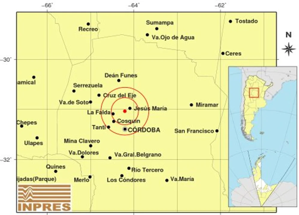 Según difundió el INPRES, el epicentro tuvo lugar en el noroeste de Córdoba (13 kilómetros al suroeste de Jesús María).